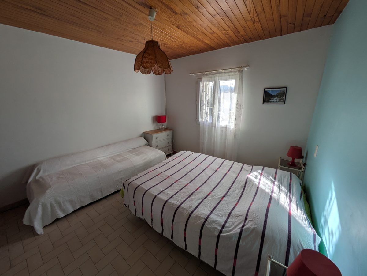 • Chambre : 1 lit en 140 cm, table et lampe de chevet, placard, 1 lit en 80 cm, table et fer à repasser.